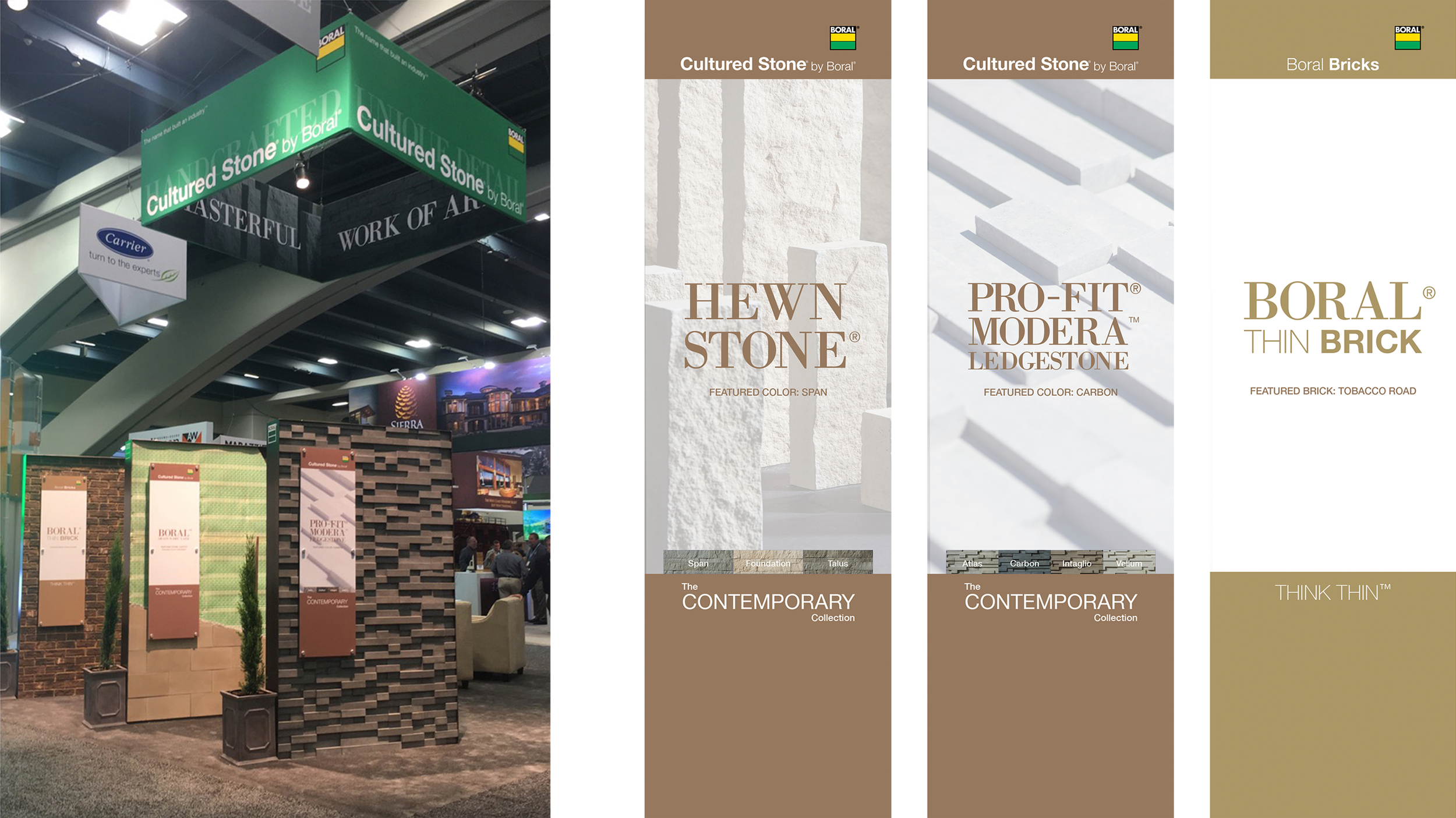 Challenge: Create in person event banners and overhead design for Cultured Stone by Boral to promote new products and enhance visual identity