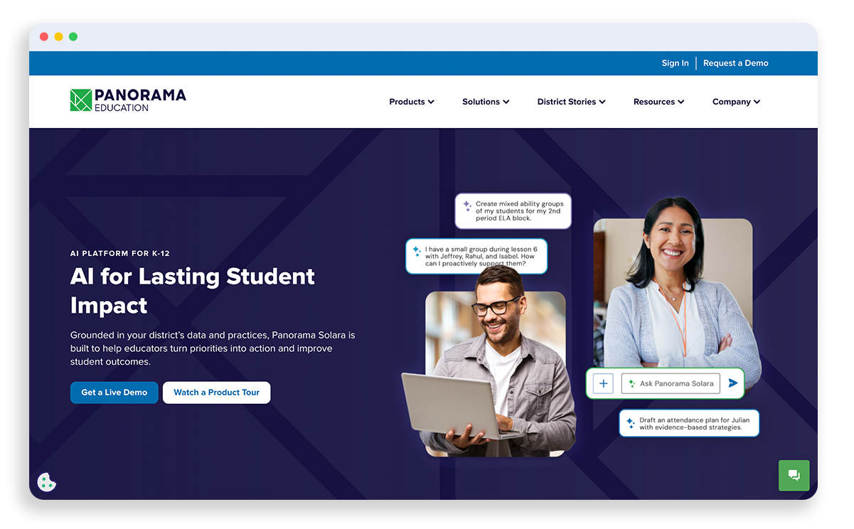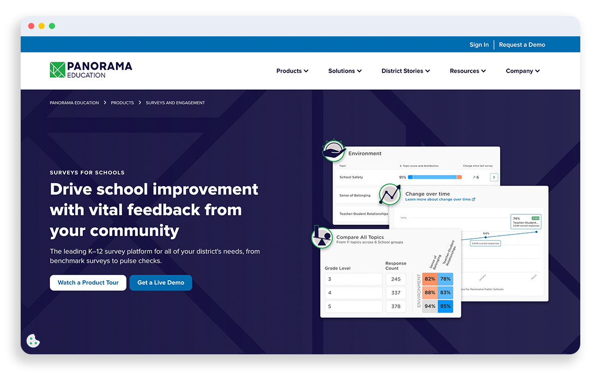 As the first sole in-house designer for a 500-person, 50-state ed-tech company (Panorama Education), I
